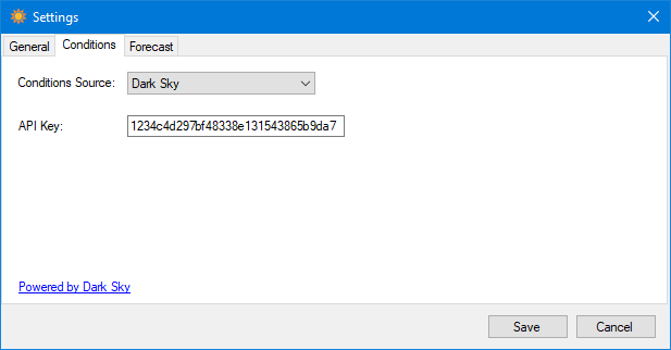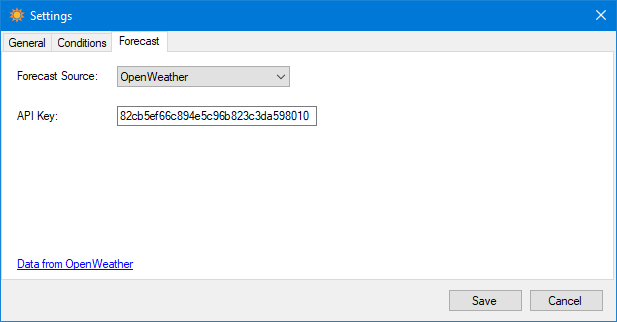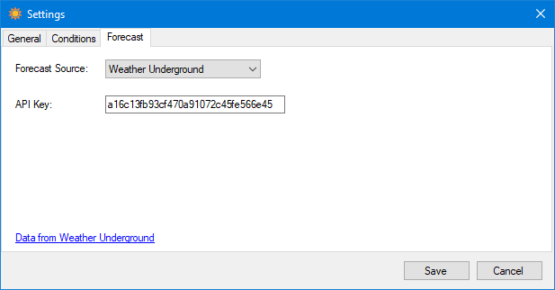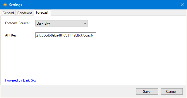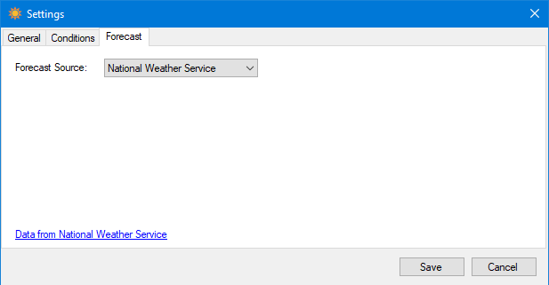 Multiple sources are supported for forecasts. After selecting a source, additional information may be required to make it work.