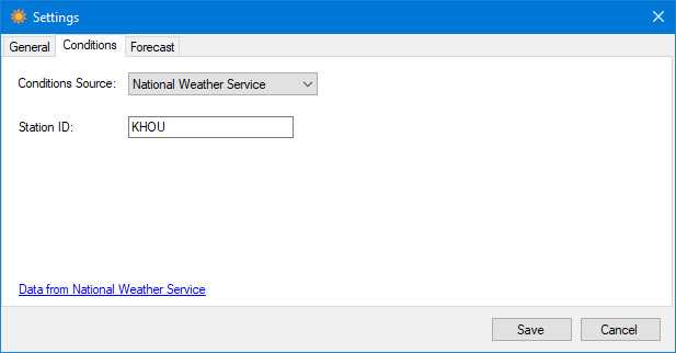 My weather program still works best if you have your own weather station to directly feed it data, but it now can work with other sources of data as well. Supported weather conditions and forecast sources are: